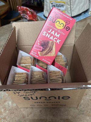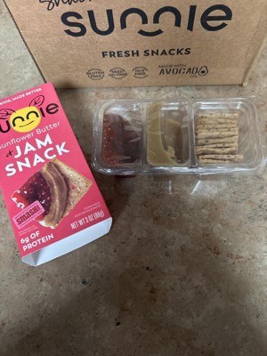 Just finished eating this. The snack itself is quite tasty, it is the packaging design that I have a problem with. The sections with the jam and sunflower butter are too deep. It makes it messy and nearly impossible to dip the crackers. I had to go get a knife, which is fine for at home, but not doable if you are out with your snack. I would definitely purchase this again if the package were redesigned.