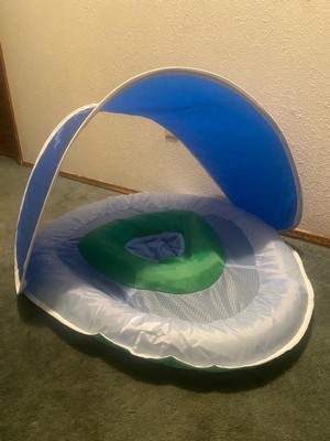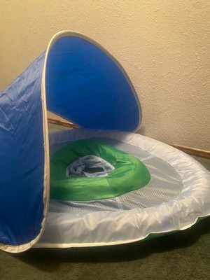 [This review was collected as part of a promotion.] Tried this blue baby float with shade for my little one. It fits the baby well and offers good sun protection. Assembly was okay, but it’s not very comfy and takes quite a bit of effort to inflate. Good idea, just wish it was easier to use.