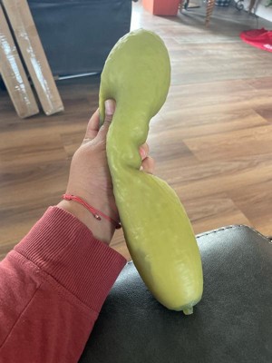 [This review was collected as part of a promotion.] Okay… this may be weird but this thing is awesome 🤣🤣 it’s become our family’s emotional support pickle. It’s a massive stress pickle at this point. The only problem we have with it is that the filling kind of clumps so it doesn’t fill the whole pickle at all times if that makes sense.