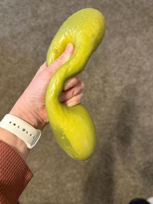 [This review was collected as part of a promotion.] It's much bigger than I thought it would be. You can stretch it and squeeze it and it will go right back to it's original state. It's exactly as described: A squishy pickle.