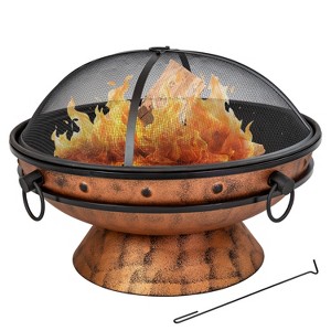 Sunnydaze Outdoor Camping or Backyard Large Round Fire Pit Bowl with Handles and Spark Screen - 30" - Copper Finish