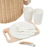 - CONVENIENT SET: Includes x2 cutlery sets, x2 reusable cups, x2 reusable plates, a bottle opener, and a wooden cutting board—all self-secure to the inside of the basket for easy transport.