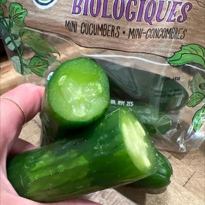 Seems like they had been previously frozen. Most were soft and or mushy. Had to throw out. Very disappointed. Usually love these mini cucumbers. Got them through drive up. Knew right away when I got home that there was a problem. Please do a better job shopping for drive up customers!