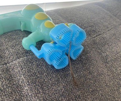 It works well and small hands can operate it on their own…. but if you have a child with long hair.. beware. I figured if hair got snagged I would untangle or snip hair if needed. It fully ripped hair out. See pic.