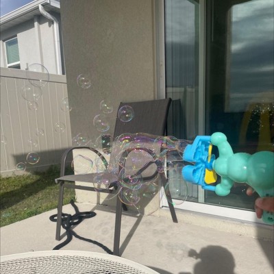 My kids were obsessed with this bubble blower when I first gave it to them. It’s easy to use and comes with everything you need. However it only lasted us about 4 days of use and then it became trash. I think once the fan part of the bubble gun just gets backed up from all the bubbles solution it just becomes useless. Now it barely blows anything thing out or nothing at all. If it does blow something out it’s just a bunched up big bubble made of little bubbles that stick to the bubble gum and eventually fall off to the ground.