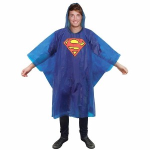 Is it a bird? Is it a plane? No, it's big black cloud and it's heading your way! Never fear, the Superman Pullover is here to save the day! This waterproof rain pullover is colored in classic Superman blue, complete with the famous S-shield logo on the chest. Re-useable pullover features hood and sleeves. One size fits all.