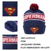 - Custom Design: Showcases an embroidered Superman logo, white “Superman” lettering on a red stripe, and a blue and red pom for a heroic touch