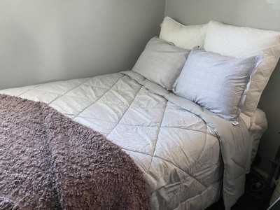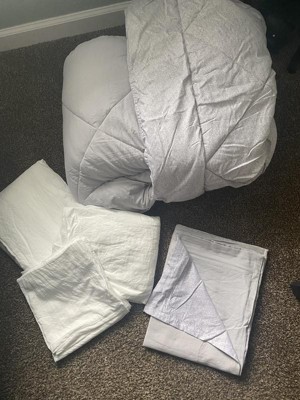 [This review was collected as part of a promotion.] I really like this Supersoft solid reverse 7 piece cooling bed in a bag. It is a soft grey solid color on one side and a heather grey and white color on the other side. It is super soft and the comforter drapes nicely on the bed. The sheets and pillowcases are white and so thin I thought I would rip them but they have held up and keep us cool at night. I like that even the pillowcases have reversible color to match the comforter. Well thought out and great bedding set.