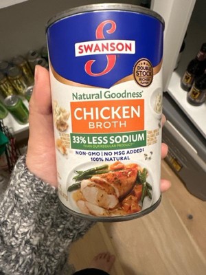 Elevate your homemade meals with the rich, full-bodied flavor of Swanson Natural Goodness Lower Sodium* Chicken Broth, featuring 33% less sodium than our regular product. Swanson Natural Goodness Chicken Broth brings together the perfectly balanced flavors of farm-raised chicken and vegetables picked at the peak of freshness. And just like homemade, our broth uses only 100% natural, non-GMO ingredients. (*Contains 570mg sodium per serving vs. 860mg sodium per serving of regular Swanson Chicken Broth. **Glutamate occurs naturally in ingredients in this product.)