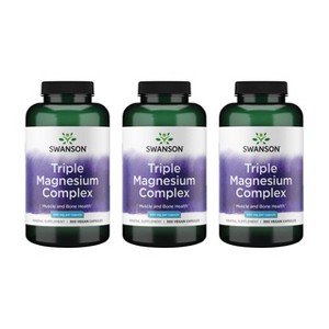 This Swanson product is formulated with science and crafted with care. The Triple Magnesium Complex serves as a daily magnesium supplement, providing essential mineral support to support overall health.* By supporting healthy bones and muscles, it helps maintain an active and balanced lifestyle.* Additionally, this wellness supplement contributes to a healthy stress response.* Our magnesium complex features three distinct forms of magnesium: magnesium citrate, magnesium oxide and magnesium aspartate. These vegan capsules are designed for optimal magnesium support, ensuring that your body receives the necessary nutrients for nerve and brain health support.* As a comprehensive dietary supplement, it bridges the gap between your diet and your body’s magnesium needs, which is especially important given that many diets fall short of the recommended magnesium intake. Whether you’re looking to support bone health or maintain healthy sleep patterns, the Triple Magnesium Complex is a reliable addition to your wellness routine, supporting your journey toward a stronger, healthier body.* We don't cut corners when it comes to quality. We provide hundreds of honest-to-goodness health products because we carefully select and source our ingredients and only work with partners we know and trust. Driven by over 150 years of combined experience, our dedicated team of pharmacists, scientists, food nutritionists, quality experts, research and development and product specialists ensures that all of our products are tested to ensure guaranteed purity, potency and reliability.