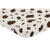 Western Cowgirl Sweet Jojo Designs mini crib sheets are designed for smaller size cribs, porta cribs, play yards, mini mattresses, and portable cribs. Made with soft and cozy fabrics in exclusive patterns and colors. Sweet Jojo Designs mini crib sheets add a stylish look to your space saving nursery. Please measure your mattress before purchasing! This sheet is smaller than a standard crib sheet and WILL NOT fit on a standard size crib mattress. Pair your mini crib baby sheet with your favorite Sweet Jojo Designs mini crib bedding sets, receiving security blankets, changing pad covers and other baby room decor accessories (These items not included). Brushed Microfiber - Chocolate Brown, Beige, Cream and Off White Vintage Country Animal Cow Print for Wild West Retro Horse Southwest Western Cowgirl Collection