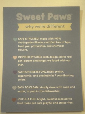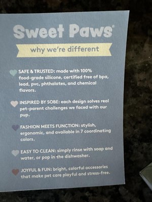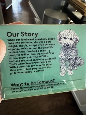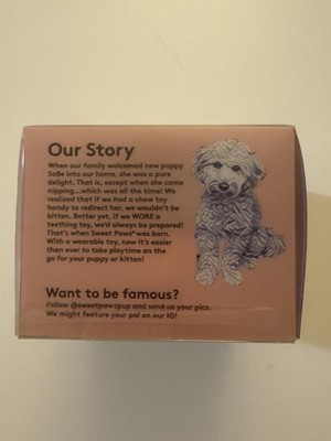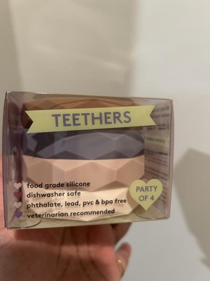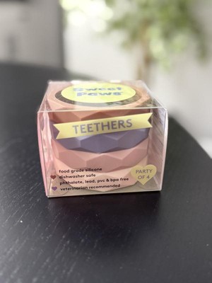 Sweet Paws silicone teethers are great for dogs! They are made of food grade silicone, they are dishwasher safe and vet recommended! Perfect for teething puppies or even kittens. Come in a pack of 4 in a variety of colors. I will be buying from this brand again.