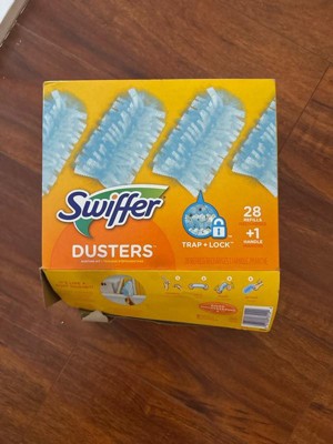 - Swiffer Dusters have specially coated fibers that TRAP + LOCK dust and don't let go