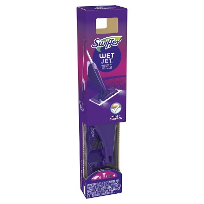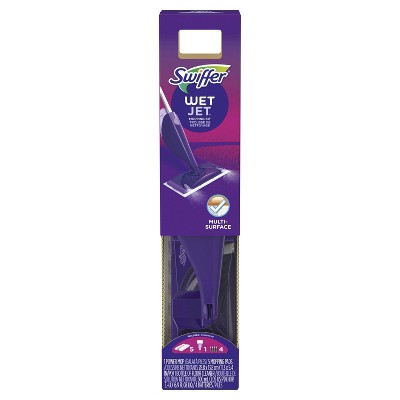 The Swiffer Wet Jet Floor Mop keeps all the floors in your house sparkling clean. Featuring a dual nozzle sprayer, this all-in-one mop dissolves and removes tough stains and dirt. The ABSORB + LOCK STRIP traps dirt & grime in the pad so it doesn't get pushed around. This starter kit includes a power floor spray mop, three power pad refills, two original mopping pad refills, 500ML bottle of cleaning solution and four batteries. With this mop you dont have to waste your time with a bucket and water. Clean your hardwood floors in a jiffy and make cleaning a fun chore.
