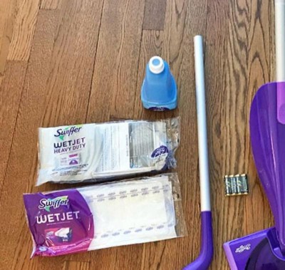 Swiffer wet jet has been my go to for cleaning my hard wood flooring, it works super well with my floors, they don’t leave any residue and you just toss it when your finished. It makes mopping a breeze. It’s easy to put on & take off and does a great job actually cleaning the floors instead of using dirty mop water, I’ve never been a fan of traditional mops.