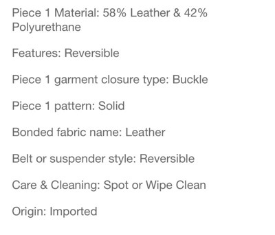 Ordering online, I was expecting a leather or mostly leather belt, as listed in the description and reviews. Noticing how stiff it was I checked the label to find “Man Made Materials” with no mention of leather. A bit misleading to say the least.