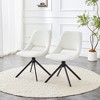 Upgrade your space with this set of PU leather dining chairs, built for durability, comfort, and modern style. Premium PU leather with refined stitching resists cracking and peeling, while a high-resilience padded seat delivers ergonomic support for daily meals or long gatherings. The waterproof surface wipes clean with a damp cloth¡ªideal for homes with kids or pets. A reinforced metal frame and quality craftsmanship provide excellent stability and value. For added ease, the 360¡ã swivel seat moves smoothly in any direction, and the 180¡ã auto-return brings the seat back after use to keep things tidy. Non-slip, wear-resistant foot pads protect floors and reduce noise for a quieter, safer environment. Assembly is quick with included tools and clear instructions. With a minimalist silhouette and versatile finish, these chairs fit seamlessly in dining rooms, kitchens, living rooms, studies, cafes, and more.