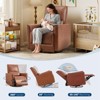Swivel Rocking Recliner Chair, Manual Leather Recliner Glider with Lumbar Support & Padded Armrest, Comfortable Rocker Nursery Single Sofa