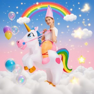Joyfy Kids Halloween Inflatable Unicorn Costumes, Riding a Unicorn, Ride-on Air Blow-up Unicorn Costume with Hat - S (4-6YRS)