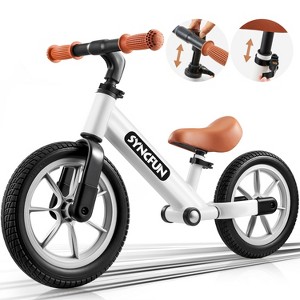 Assembly is a breeze, requiring no tools and taking less than a minute, so your child can start riding right away. Safety and comfort are prioritized with a thickened shock-absorbing seat, airless anti-slip tires, and a durable high-carbon steel frame, ensuring a safe and enjoyable riding experience on various terrains. This balance bike is an ideal addition to any toddler's bike collection, offering lasting enjoyment and developmental benefits.