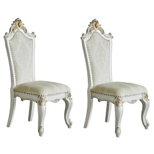 Infuse your dining room with timeless elegance using these side chairs, featuring luxurious butterscotch faux leather upholstery for both comfort and sophistication. Enhanced by an antique pearl finish and Queen Anne legs, their classic design exudes