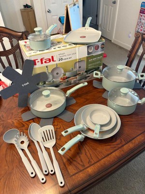 T-fal 12pc Ceramic Nonstick Cookware Set, Refresh Ceramic, Mint Green