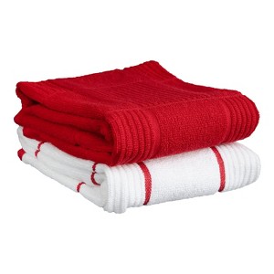 T-fal Solid and Check Parquet Kitchen Towels Two Pack Red