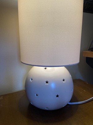 The Table Lamp - Includes LED Light Bulb. I love the ceramic design. You are able to adjust the light to three settings low, medium, high. The lamp is easy to clean. I love that is comes with a bulb on the bottom and how the cutout stars reflect on the room.