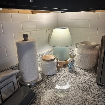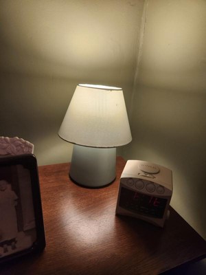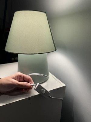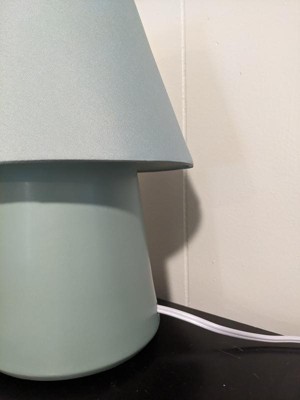 I got this lamp for my toddlers room and its the perfect little size! I love the light sage green color that goes well with the rest of the decor. I also really love the simple and modern design. The lamp turns on with a switch on the cord which ia so convenient and easy to use.