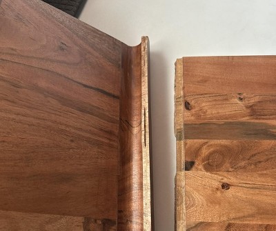 A: The stand is made of acacia wood, providing durability and a natural look.