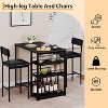- The ultimate small-space solution! Two bar chairs tuck completely under the table, freeing up precious floor space. Three large storage shelves are perfect for keeping dinnerware, snacks, and linens organized and within easy reach.