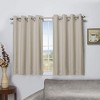 The solid blackout grommet curtain panel features a casual handsome face fabric woven with a layer of black yarns sandwiched between two layers of colored yarn,plusa separate liner that is also woven with black-out yarns. The panel drapes beautifully while providing unbeatable protection from the harsh outside light. Adel Solid Blackout Thermal Grommet Single Curtain Panel saves energy, provides privacy, creates an air barrier for extra insulation to keep out the cold and helps to protect the room from drafts. These 50” wide panels are available in 63” 84” and 96” lengths. Additional features include a 4" bottom hems, 1" side hems, and weighted corners. The curtain slides easily through the 1.5" diameter opening in the metal grommets, using a curtain rod up to 1.25" in diameter.Available in 5 colors: Woodland Green, Driftwood, and Floral Rose come with antique bronze grommet finish and Parchment and Stone has brush nickel grommet finish.