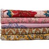 An elegant patchwork of vibrant design with an airy, lightweight feel, the Kantha series is visibly unique. Kantha embroidery is a time-honored technique practiced for centuries by skilled Indian artisans. Each piece is hand-crafted from several layers of cotton or silk held together by a running “Kantha” stitch. The luxurious materials, rich colors, vintage artistry and one-of-a-kind beauty will elevate your decor and infuse individuality to any space. Features: 100% Cotton / Hand crafted / Technique: Quilted / Size: 50x70 / Country of origin: India / Can be used in a variety of ways: as a blanket, table cover, wall hanging, tapestry, beach cover and more / Hand wash cold water / Some variance in size and color may occur due to the one-of-a-kind vintage nature of this product
