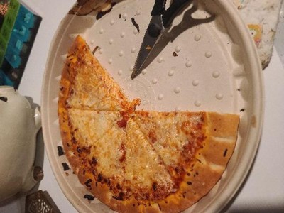 Crust was good. Cheese was low quality and did not melt well. The sauce was gross. It had a weird sweet taste and too much. Tasted like the sauce from a can of Spaghettios.