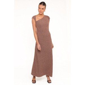 Step out in understated elegance with the Talisa Midi Dress in Brown Marle . Featuring a sophisticated midi length and an asymmetrical neckline, this dress is the definition of effortless chic.