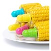 - This set of four corn picks features one pair in each yellow, pink, green and blue design.