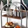 Featuring an elegant arched frame and five spacious tiers, this tall bookshelf offers ample storage for books, decor, and display items. The metal construction provides sturdy support while the rustic finish adds character to any room. With versatile functionality, it serves as a practical organizer in living rooms, home offices, or bedrooms, accommodating everything from literary collections to decorative accents. The thoughtful design includes easy assembly with labeled components for straightforward setup. Suitable for various decor styles, this bookcase maximizes vertical storage space without occupying excessive floor area. Its durable build ensures long-lasting use as either a focal point or functional storage solution in residential spaces.