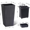 This 2-pack 16-inch rattan planter set has five key benefits. It comes with built-in drainage holes and a water reservoir to prevent root rot and enable easy hydration. Each planter is equipped with a monitor and a tray, which can save up to two weeks of watering time. It has an independent water inlet and four wheels for easy watering and mobility. The elegant rattan matte white design fits various scenes like patios and offices. Made of weather-resistant plastic, it is durable and keeps color and structure stable throughout the year.