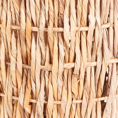 - The strong material is composed of rope and water hyacinth wicker and is woven in a beautifully attractive pattern. A wireframe also adds to the basket’s stability.