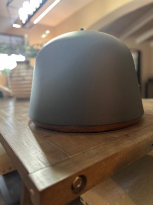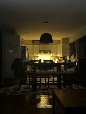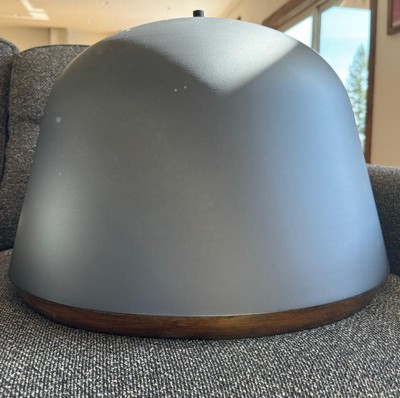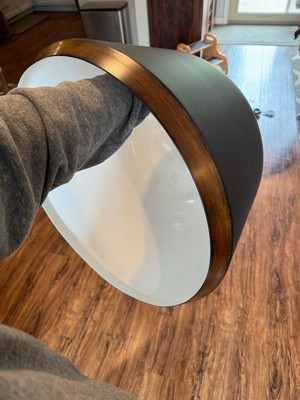[This review was collected as part of a promotion.] This pendant was way bigger than I expected, but it ended up being perfect for our needs. It is very lightweight, which makes hanging much easier. The little faux wood bottom strip matches the wood flooring and furniture pieces in my house perfectly. I love the look of the matte finish. The inside isn’t the most attractive, but I suppose it needs to be white like that to disperse the light. It holds 4 bulbs and gives off just enough light, a little more concentrated due to the design. Overall, it’s a nice fixture, I just don’t feel the price tag matches the product. It’s a bit too plain for that kind of price.