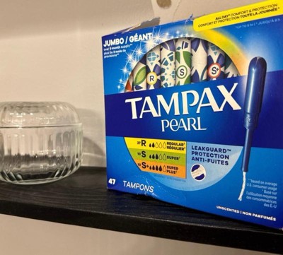 Tampax Pearl Super Plus absorbency tampons are comfortable, and most useful on those heavy flow days, plus it's easy to discreetly toss the applicator inside of the packaging.