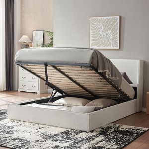 Artistryhome Full Modern Minimalist Fabric Upholstered Platform Bed with Hydraulic Storage, Slats Included ,No Box Spring Needed,Turtle