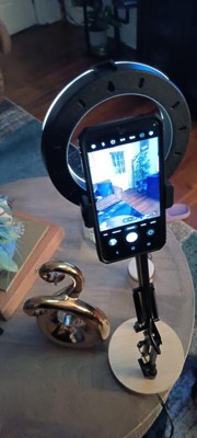 I love this very adjustable task lamp, but feel the built-in phone clip was kind of an afterthought. The phone clip is kind of poorly engineered and the ring light is almost too small to accommodate a good view through you phones camera lens. I could see this being useful if it was a battery powered light fixture, but the cord kind of limits you for placement unless you have an extension cord or portable power supply. I decided this light would be better used as a light for my coffee corner and it works wonderfully there. All in all, it works great but could stand to be improved upon.