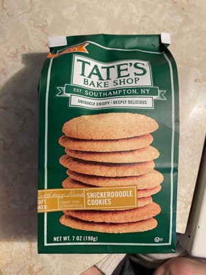 [This review was collected as part of a promotion.] * I received this product for free in exchange for my honest review.* These snickerdoodle cookies from Tates Bake Shop are absolutely delicous. They are thin and crispy with just the right amount of sweetness, making them the perfect snack to pair with an ice cold glass of milk. The cookies were not stale at all, in fact they tasted quite fresh. I can't wait to try their chocolate chip cookies next!