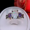 • Captivating Centerpiece: Features an 8mmx10mm oval-shaped simulated fire opal, radiating an ethereal play of colors, complemented by purple CZ stones.