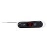 The ultra-thin 1½-mm tip leaves a much smaller hole in your food, so fewer flavorful juices will escape as you check the temperature throughout the cooking process. Also features a HOLD function, which stores the temperature of your food on the bright red backlit display even when removed. The 4" stainless steel probe folds into thermometer casing for storage and acts as the ON/OFF switch.