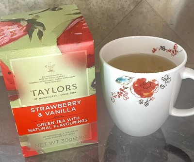 I'm normally a big fan of Taylors Tea (I own at least 10 flavors), but this one is objectively bad. It tastes like a toddler dropped their dum-dum lollipop in your cup; it's not just odd, it's unrecognizable. One drinks green tea BECAUSE IT TASTES NICE--I do, at least--and this tea completely misses the point. The flavor of green tea is entirely masked by the syrup-sweet flavor of "strawberry", which is more akin to the one-tone red-forty synthetic taste of off-brand fruit snacks than the actual fruit. As for the vanilla, it's barely there. It's really too bad; fruit-flavored teas can be delightful. Mango can be a marvelous accent to black and green teas alike, and floral tones like jasmine or hibiscus are a delightful compliment to the bright, vivid flavor of green tea. But strawberry--especially this strawberry--belongs in lollipops and cough syrup, not tea.