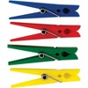 Assign student tasks or classroom jobs with these colored plastic clips. Hang student artwork or classroom decorations. Use clothing pins for hanging clothes or even for crafts. Write on the plastic clothespins with a permanent marker and wipe them off with rubbing alcohol. Each pack includes 40 plastic clothes pins: 10 each of red, blue, green, and yellow. Measures approximately 2-7/8" x 3/8". Sold as 3 packs for a total of 120 clothespins.