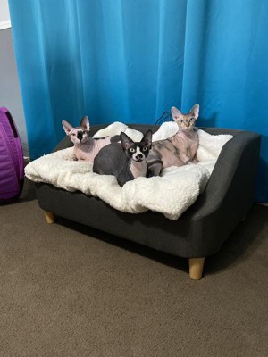 [This review was collected as part of a promotion.] My cats absolutely love their sofa couch. It’s very comfortable. I love how it matches my living room and gives it such a cute modern pet couch addition. It’s material is fabulous and the structure is very solid. The cushion is removable so you can wash it when needed. We love it!