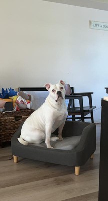 [This review was collected as part of a promotion.] Absolutely adorable and incredibly comfortable! My Bulldog LOVES his new bed. We’ve had this for a little over a month now and it is a peace saver. Instead of the late night whining to climb into our bed, our furbaby cozies up into his own now. It’s very soft and cushiony, clearly makes him happy. And maintenance is a breeze. Definitely thrilled with this piece, especially since the design makes for a beautiful addition to our decor!